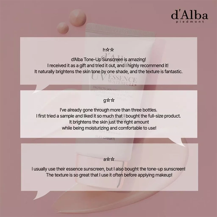 [D'ALBA OFFICIAL] Waterfull Tone-up Sunscreen 50ml, Vegan, SPF 50+ PA++++, Sun Block, Tone Up, Gentle and Safe Use Sunscreen,